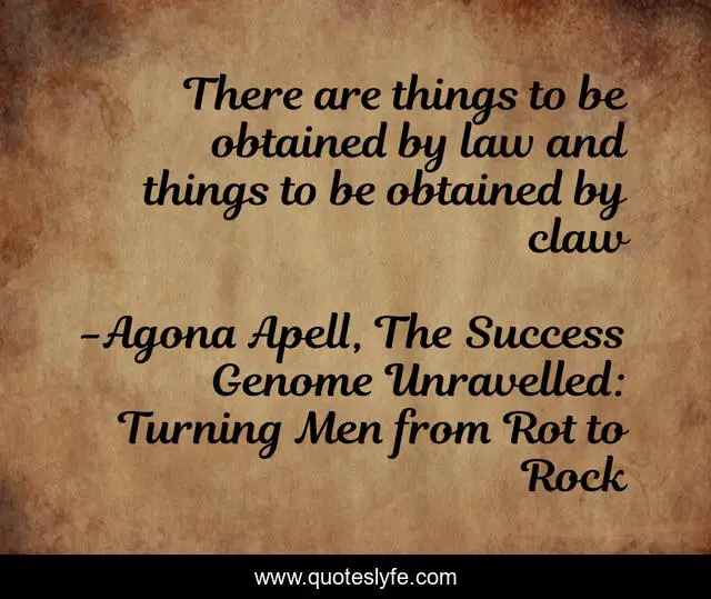 This page presents the quote "There are things to be obtained by law and things to be obtained by claw". Author of this quote is Agona Apell, The Success Genome Unravelled: Turning Men from Rot to Rock. This quote is about politics, business, inspirational, enthusiasm,.