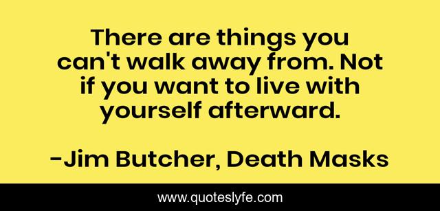 This page presents the quote "There are things you can't walk away from. Not if you want to live with yourself afterward.". Author of this quote is Jim Butcher, Death Masks. This quote is about life, harry-dresden,.