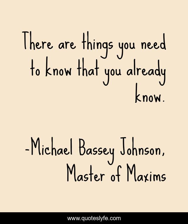 "Michael Bassey Johnson, Master of Maxims Quotes." Quoteslyfe.com, 2025. Sat. 06 Dec. 2025. <https://www.quoteslyfe.com/quote/There-are-things-you-need-to-know-31589>.