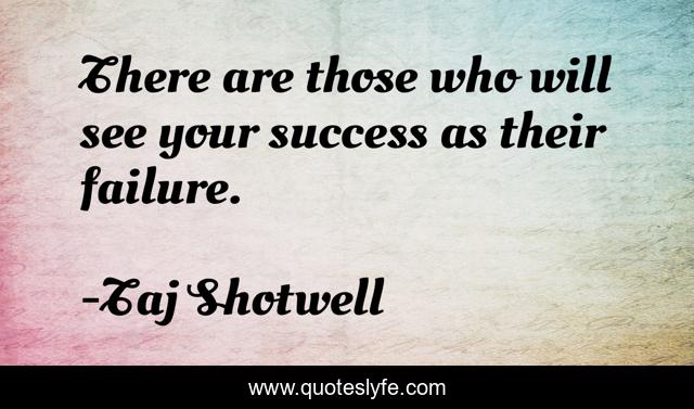 This page presents the quote "There are those who will see your success as their failure.". Author of this quote is Taj Shotwell. .