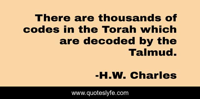 This page presents the quote "There are thousands of codes in the Torah which are decoded by the Talmud.". Author of this quote is H.W. Charles. This quote is about code, secrets, wealth-creation, secret, message, hidden, wealth-strategies,.