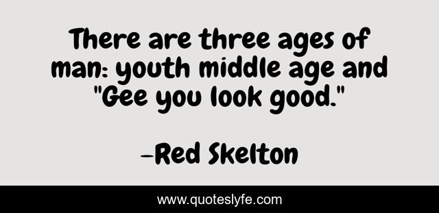 This page presents the quote "There are three ages of man: youth middle age and "Gee you look good."". Author of this quote is Red Skelton. This quote is about age, birthdays,.