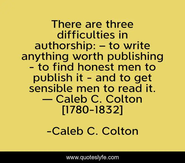 This page presents the quote "There are three difficulties in authorship: – to write anything worth publishing - to find honest men to publish it - and to get sensible men to read it. — Caleb C. Colton [1780-1832]". Author of this quote is Caleb C. Colton. .