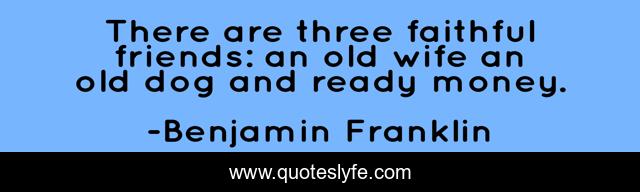 This page presents the quote "There are three faithful friends: an old wife an old dog and ready money.". Author of this quote is Benjamin Franklin. This quote is about friends, friendship,.