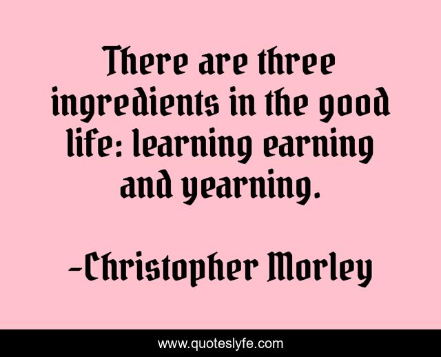 This page presents the quote "There are three ingredients in the good life: learning earning and yearning.". Author of this quote is Christopher Morley. .