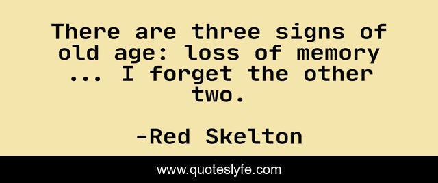 This page presents the quote "There are three signs of old age: loss of memory ... I forget the other two.". Author of this quote is Red Skelton. This quote is about age, birthdays,.