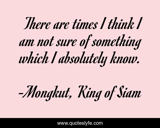 This page presents the quote "There are times I think I am not sure of something which I absolutely know.". Author of this quote is Mongkut, King of Siam. .