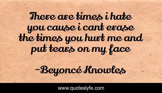 This page presents the quote "There are times i hate you cause i cant erase the times you hurt me and put tears on my face". Author of this quote is Beyoncé Knowles. .