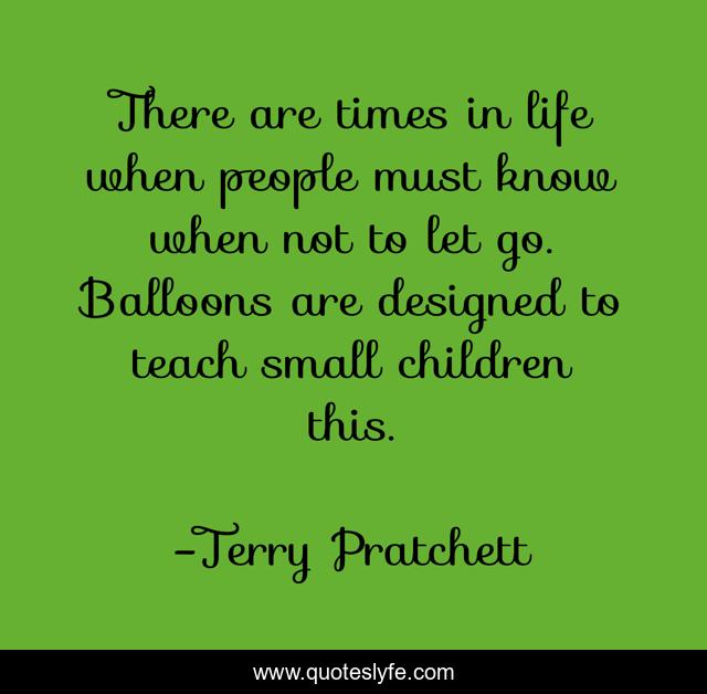 This page presents the quote "There are times in life when people must know when not to let go. Balloons are designed to teach small children this.". Author of this quote is Terry Pratchett. This quote is about letting-go, tenacity,.