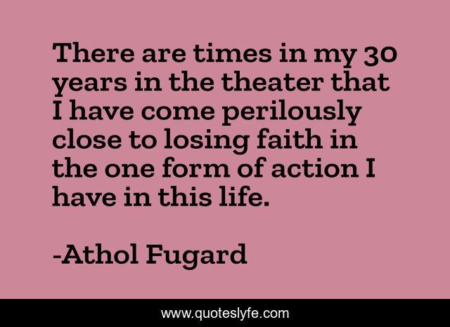 This page presents the quote "There are times in my 30 years in the theater that I have come perilously close to losing faith in the one form of action I have in this life.". Author of this quote is Athol Fugard. This quote is about losing, action, life,.