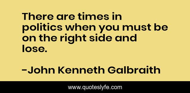 This page presents the quote "There are times in politics when you must be on the right side and lose.". Author of this quote is John Kenneth Galbraith. This quote is about right, lose,.