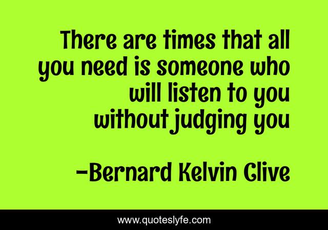 This page presents the quote "There are times that all you need is someone who will listen to you without judging you". Author of this quote is Bernard Kelvin Clive. This quote is about compassion, love, caring-heart, affection, listening-ear,.