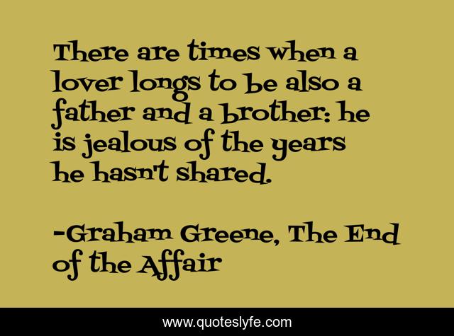 This page presents the quote "There are times when a lover longs to be also a father and a brother: he is jealous of the years he hasn't shared.". Author of this quote is Graham Greene, The End of the Affair. .
