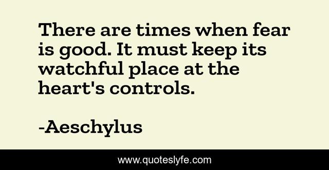 This page presents the quote "There are times when fear is good. It must keep its watchful place at the heart's controls.". Author of this quote is Aeschylus. This quote is about ways, fear, overcome,.