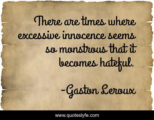 This page presents the quote "There are times where excessive innocence seems so monstrous that it becomes hateful.". Author of this quote is Gaston Leroux. .