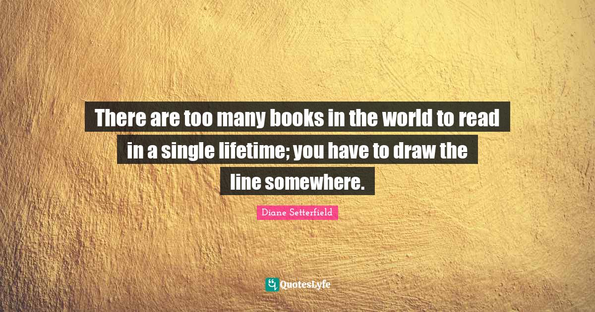 This page presents the quote "There are too many books in the world to read in a single lifetime; you have to draw the line somewhere.". Author of this quote is Diane Setterfield. This quote is about single, lifetime, world, lines, book,.