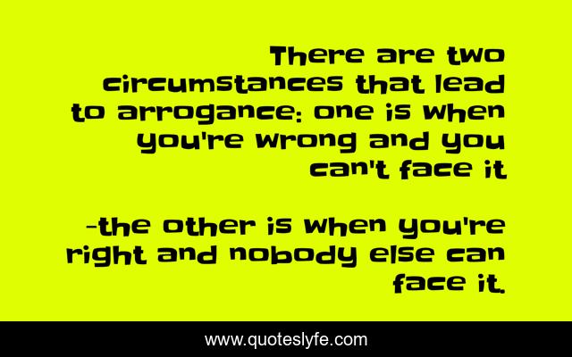 There are two circumstances that lead to arrogance: one is when you're wrong and you can't face it