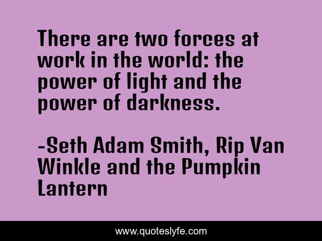 This page presents the quote "There are two forces at work in the world: the power of light and the power of darkness.". Author of this quote is Seth Adam Smith, Rip Van Winkle and the Pumpkin Lantern. This quote is about force, darkness, power, light, the-power-of-light, the-power-of-darkness, world,.