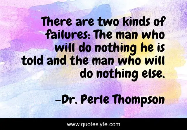 This page presents the quote "There are two kinds of failures: The man who will do nothing he is told and the man who will do nothing else.". Author of this quote is Dr. Perle Thompson. This quote is about failures, mistakes,.