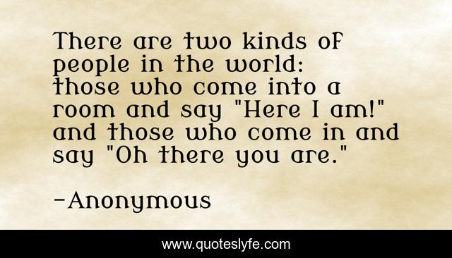 This page presents the quote "There are two kinds of people in the world: those who come into a room and say "Here I am!" and those who come in and say "Oh there you are."". Author of this quote is Anonymous. .