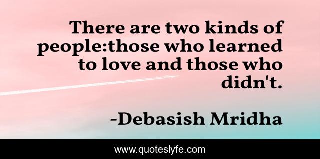 This page presents the quote "There are two kinds of people:those who learned to love and those who didn't.". Author of this quote is Debasish Mridha. This quote is about life, love, knowledge, inspirational, intelligence, philosophy, wisdom, quotes, affection,.