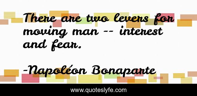 This page presents the quote "There are two levers for moving man -- interest and fear.". Author of this quote is Napoléon Bonaparte. This quote is about fear, motivation, interest,.