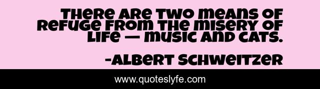 This page presents the quote "There are two means of refuge from the misery of life — music and cats.". Author of this quote is Albert Schweitzer. This quote is about life, cats, music,.