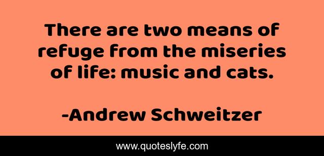 This page presents the quote "There are two means of refuge from the miseries of life: music and cats.". Author of this quote is Andrew Schweitzer. This quote is about life, cat, music, misery,.