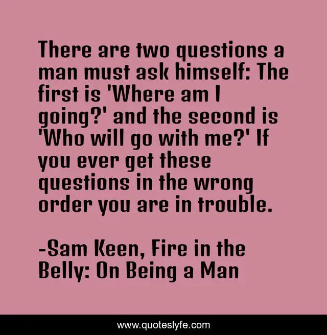 "Sam Keen, Fire in the Belly: On Being a Man Quotes." Quoteslyfe.com, 2025. Mon. 15 Dec. 2025. <https://www.quoteslyfe.com/quote/There-are-two-questions-a-man-must-223729>.