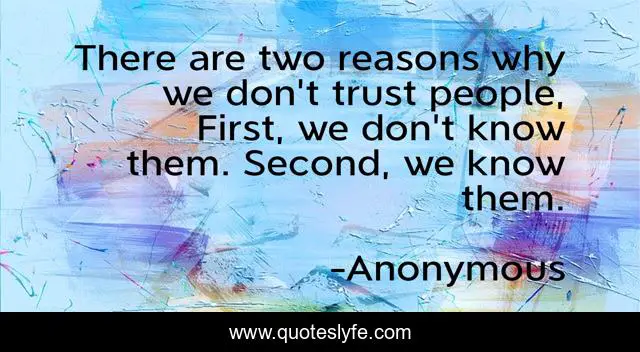 This page presents the quote "There are two reasons why we don't trust people, First, we don't know them. Second, we know them.". Author of this quote is Anonymous. This quote is about lies, believe, trust, belief,.