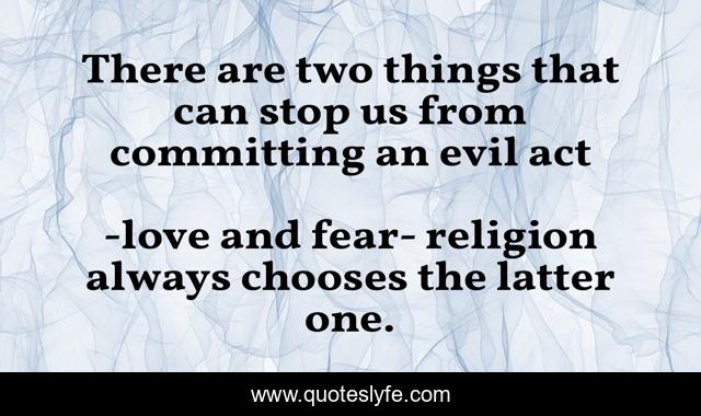 This page presents the quote "There are two things that can stop us from committing an evil act". Author of this quote is love and fear- religion always chooses the latter one.. This quote is about m.f. moonzajer, love, hatred and madness, affection,.