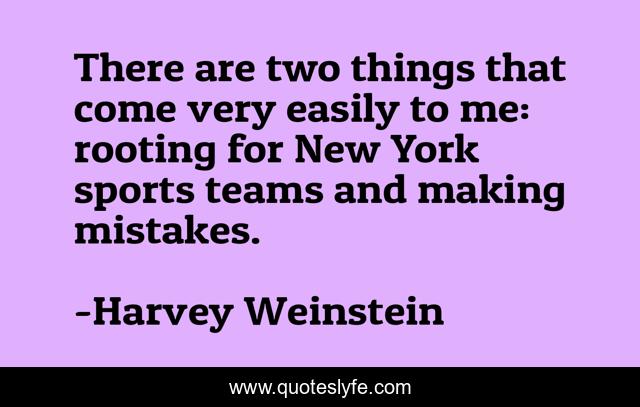 This page presents the quote "There are two things that come very easily to me: rooting for New York sports teams and making mistakes.". Author of this quote is Harvey Weinstein. This quote is about me, mistakes,.