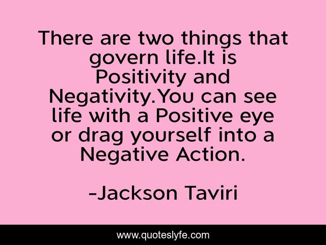 This page presents the quote "There are two things that govern life.It is Positivity and Negativity.You can see life with a Positive eye or drag yourself into a Negative Action.". Author of this quote is Jackson Taviri. .
