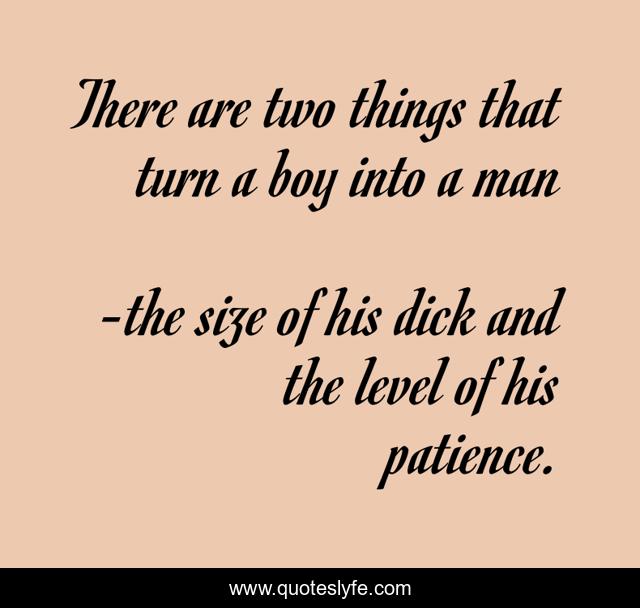 This page presents the quote "There are two things that turn a boy into a man". Author of this quote is the size of his dick and the level of his patience.. This quote is about m.f. moonzajer, love, hatred and madness, affection,.