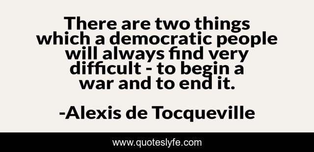 This page presents the quote "There are two things which a democratic people will always find very difficult - to begin a war and to end it.". Author of this quote is Alexis de Tocqueville. This quote is about end, find, people,.