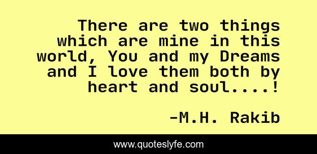 This page presents the quote "There are two things which are mine in this world, You and my Dreams and I love them both by heart and soul....!". Author of this quote is M.H. Rakib. This quote is about beloved, love, dreams, affection, loyalty,.