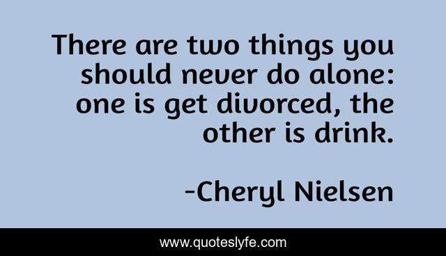 This page presents the quote "There are two things you should never do alone: one is get divorced, the other is drink.". Author of this quote is Cheryl Nielsen. This quote is about divorce, humor, wine,.