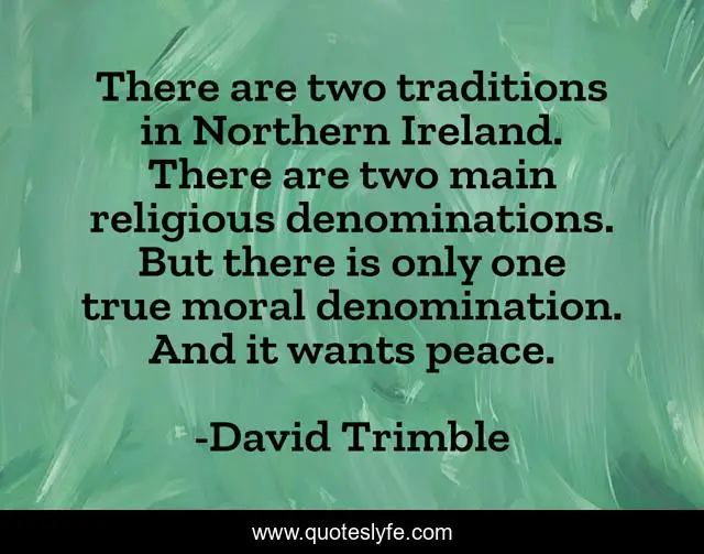 This page presents the quote "There are two traditions in Northern Ireland. There are two main religious denominations. But there is only one true moral denomination. And it wants peace.". Author of this quote is David Trimble. This quote is about moral, true, traditions,.