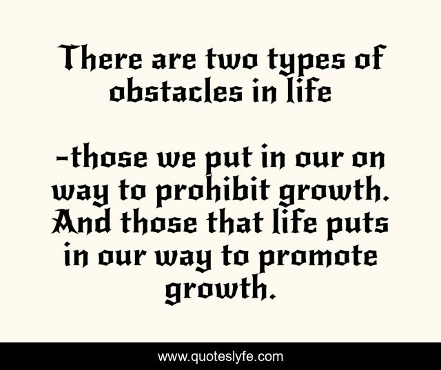 "those we put in our on way to prohibit growth. And those that life puts in our way to promote growth. Quotes." Quoteslyfe.com, 2025. Sat. 06 Dec. 2025. <https://www.quoteslyfe.com/quote/There-are-two-types-of-obstacles-in-130525>.