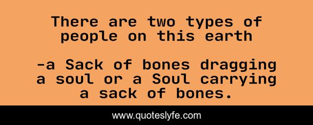 This page presents the quote "There are two types of people on this earth". Author of this quote is a Sack of bones dragging a soul or a Soul carrying a sack of bones.. .