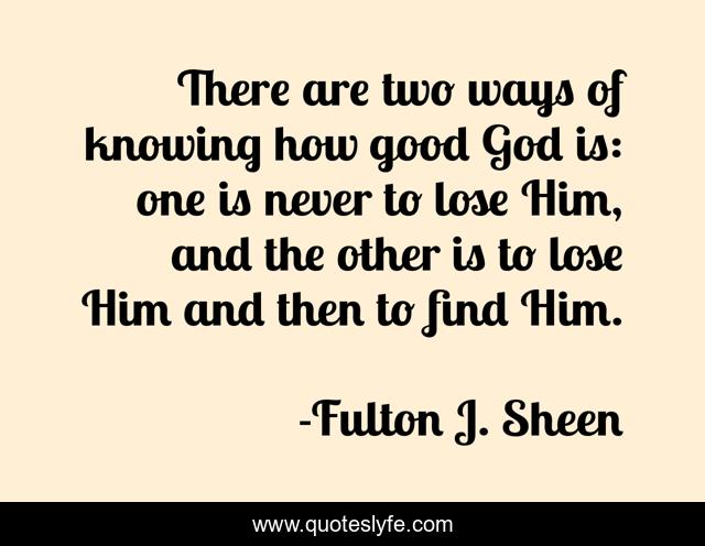 This page presents the quote "There are two ways of knowing how good God is: one is never to lose Him, and the other is to lose Him and then to find Him.". Author of this quote is Fulton J. Sheen. This quote is about god, forgiveness, grace, mercy,.