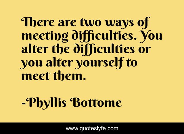 This page presents the quote "There are two ways of meeting difficulties. You alter the difficulties or you alter yourself to meet them.". Author of this quote is Phyllis Bottome. .