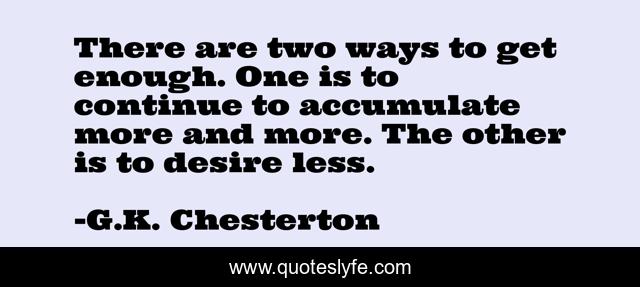 This page presents the quote "There are two ways to get enough. One is to continue to accumulate more and more. The other is to desire less.". Author of this quote is G.K. Chesterton. This quote is about satisfaction, serenity, happiness,.