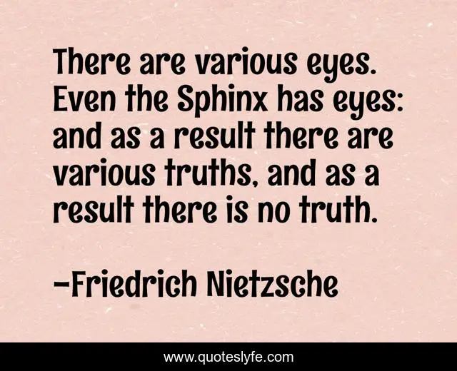 "Friedrich Nietzsche Quotes." Quoteslyfe.com, 2025. Sun. 07 Dec. 2025. <https://www.quoteslyfe.com/quote/There-are-various-eyes-Even-the-Sphinx-310126>.