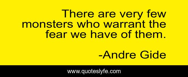 This page presents the quote "There are very few monsters who warrant the fear we have of them.". Author of this quote is Andre Gide. This quote is about success, happiness,.