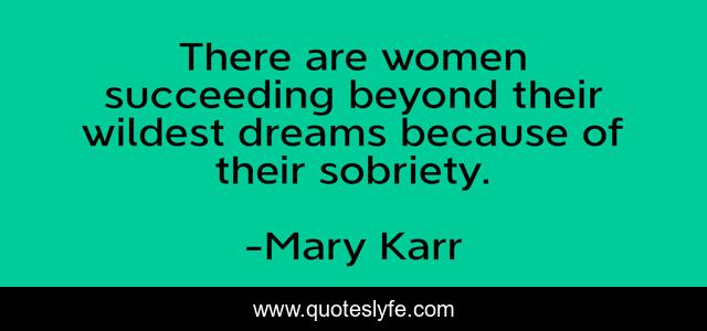 This page presents the quote "There are women succeeding beyond their wildest dreams because of their sobriety.". Author of this quote is Mary Karr. This quote is about sobriety, succeeding, women,.