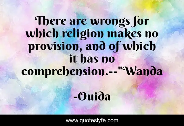 This page presents the quote "There are wrongs for which religion makes no provision, and of which it has no comprehension.--"Wanda". Author of this quote is Ouida. This quote is about wrongs, religion, sin, understanding,.
