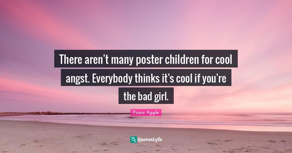 This page presents the quote "There aren't many poster children for cool angst. Everybody thinks it's cool if you're the bad girl.". Author of this quote is Fiona Apple. This quote is about girl, children,.