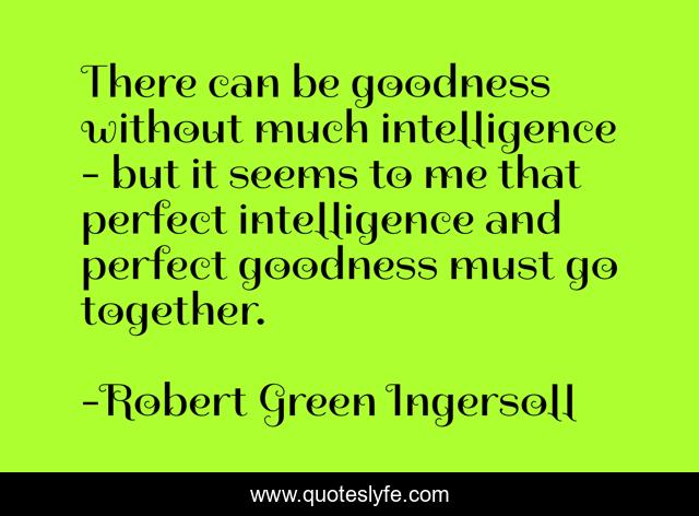 This page presents the quote "There can be goodness without much intelligence - but it seems to me that perfect intelligence and perfect goodness must go together.". Author of this quote is Robert Green Ingersoll. This quote is about me, perfect, together,.
