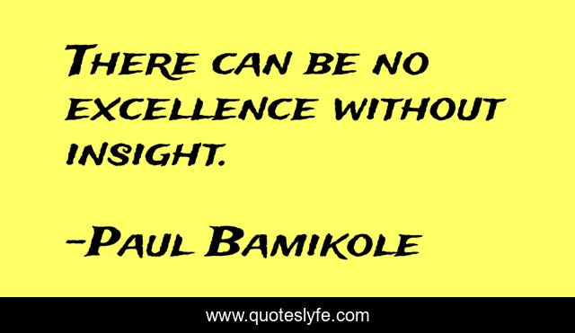 This page presents the quote "There can be no excellence without insight.". Author of this quote is Paul Bamikole. This quote is about insight, excellence,.